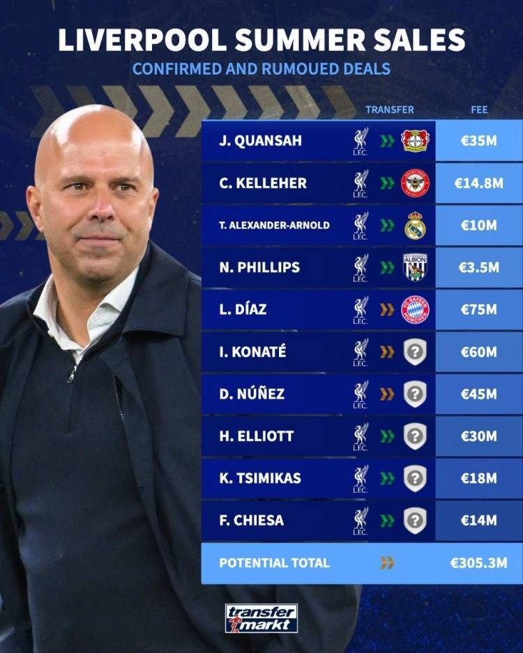 科纳特&努涅斯在列!德转预测:利物浦今夏可能出售10将套现3亿欧